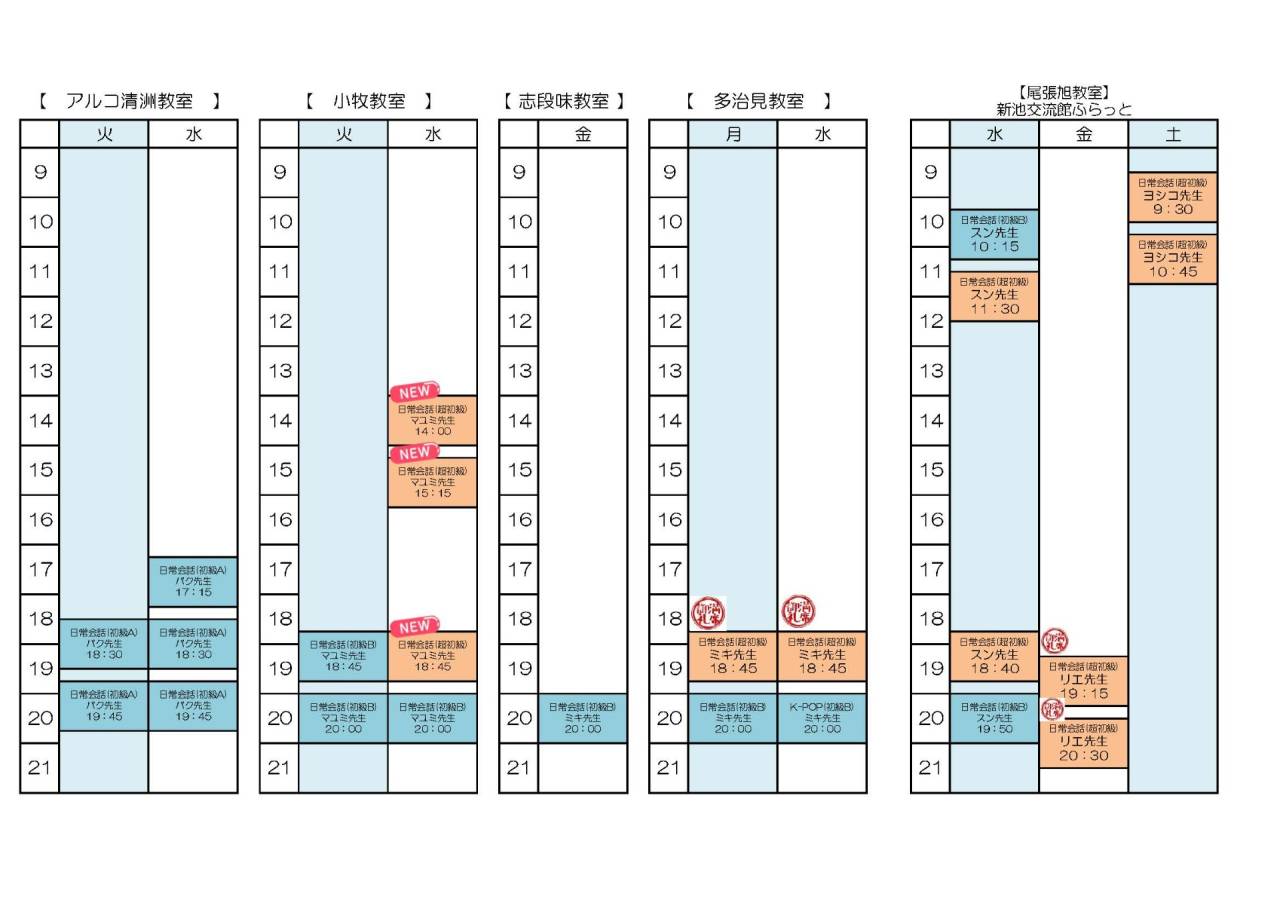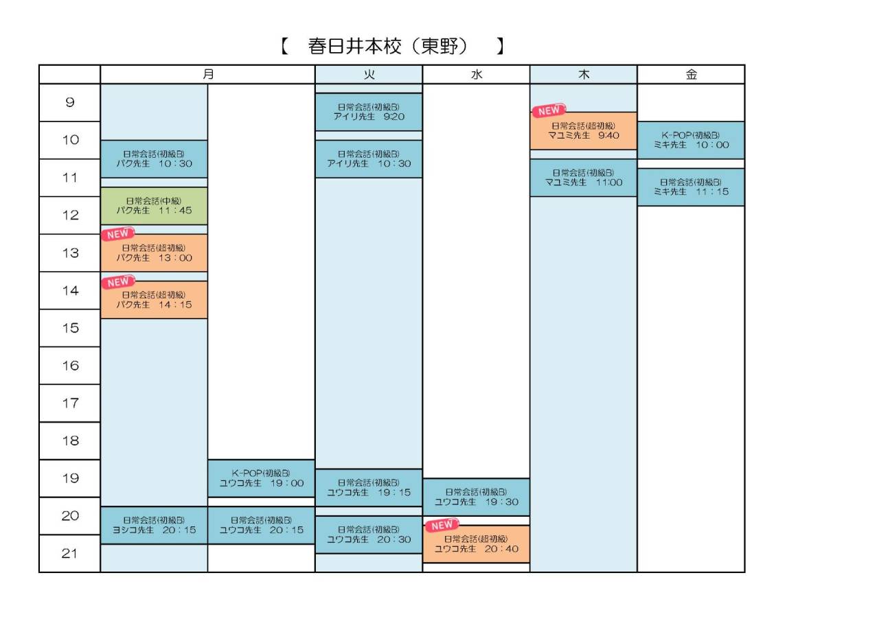 ※4月以降の時間割になります。時間割は変更になる場合がございます。